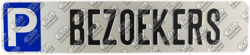 Tekstplaat wit reflex met P-sticker, 52x11, geperst zonder rand, BEZOEKERS